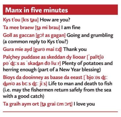 - Manx with only 1,800 speakers all located on the Isle of Mann.
